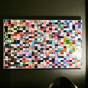 Enkaustik Medium auf Holplatte, gerahmt in Schattenfugenrahmen Birke, grau