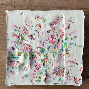 Enkaustik Medium, Pigmente, gerahmt in Schattenfugenrahmen aus Stahl